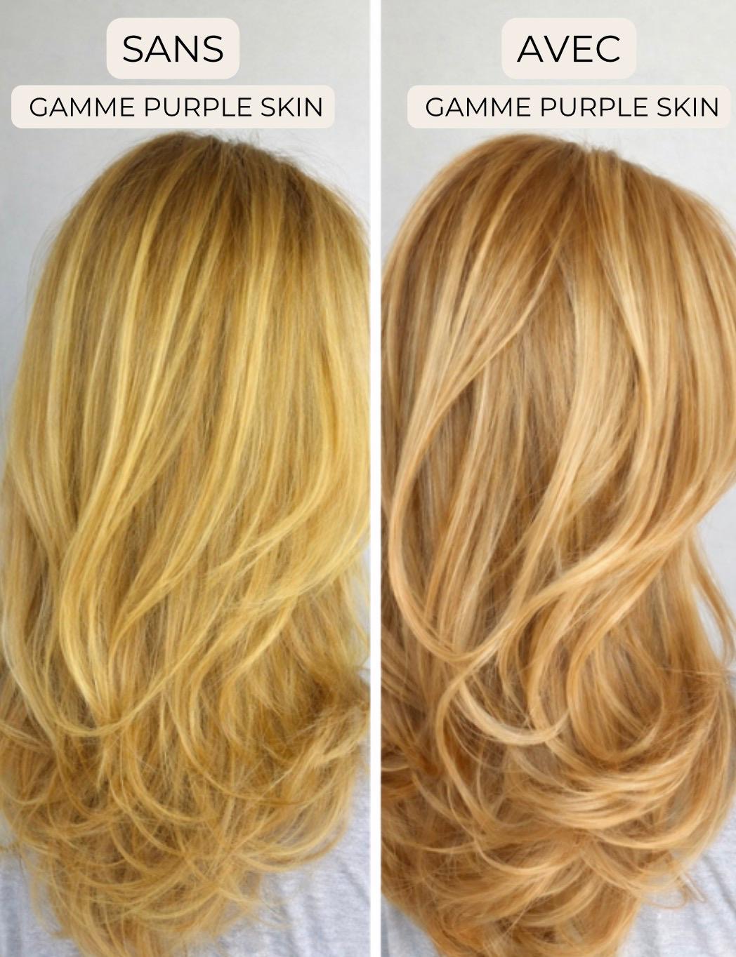 La gamme Purple Skin a été spécialement conçue pour sublimer les cheveux blonds, décolorés, gris ou méchés tout en prenant soin de la fibre capillaire.
